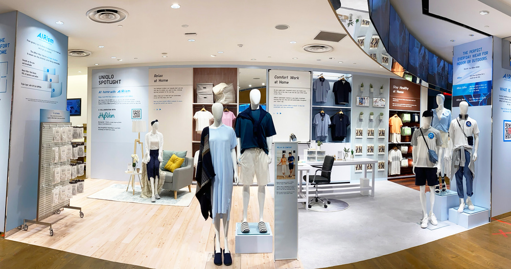 In a time of social distancing and home-living, we came up with the concept of “AIRism at Home” to promote UNIQLO’s best-selling AIRism collection and how it helps our customers feel comfortable during these difficult times. In the New Normal, the lines between work and home spaces are blurred, so we wanted to re-work the Spotlight space to reflect that.